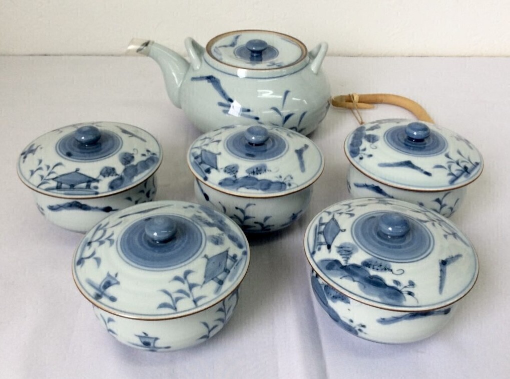 - 有田焼 慶四郎窯 茶器揃 茶器 急須 蓋付湯呑 5客 揃い 染付 ゆのみ きゅうす お茶 食器 伝統工芸 箱入り 新品 未使用品 和食器 管46051724