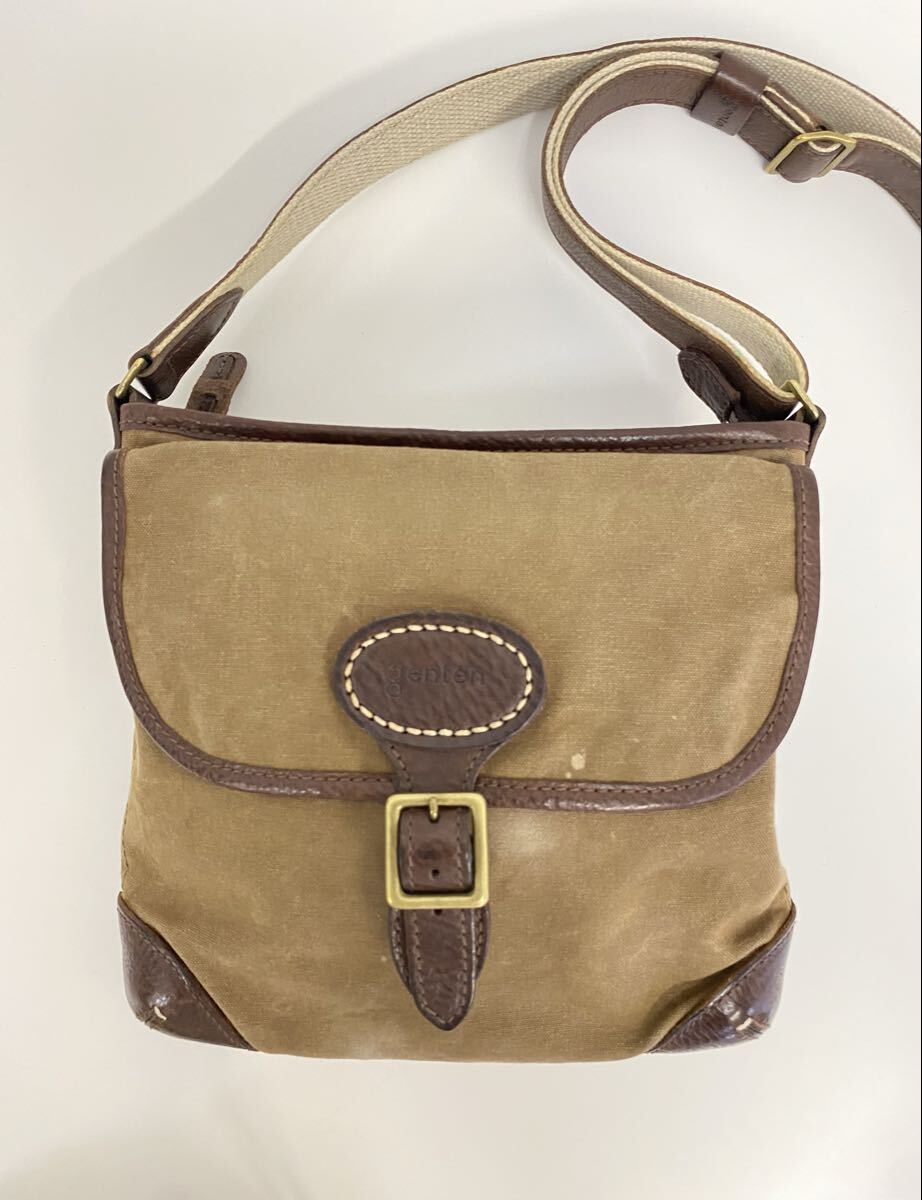 - ★ genten ショルダーバッグ ブラウン ◆ レザー×キャンバス クロスボディー ゲンテン ◆W7 FうLS6-01