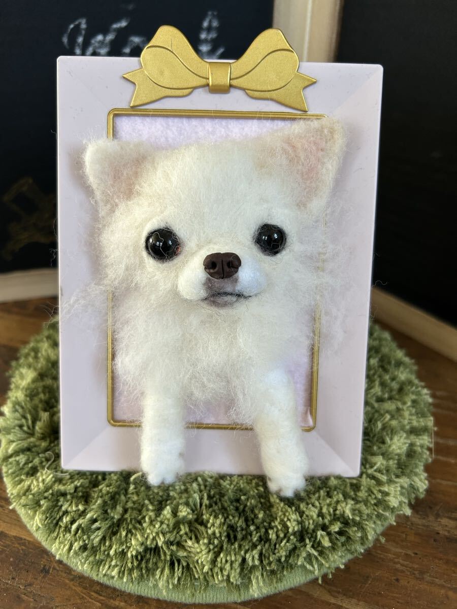 - 羊毛フェルト ハンドメイド ホワイトチワワ フレーム