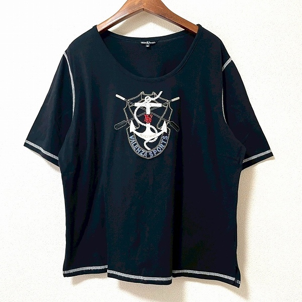 - #snc バレンザ スポーツ VALENZA SPORTS Tシャツ 48 黒 白 半袖 ステッチ 刺繍 ラインストーン イカリ マリン レディース [852650]