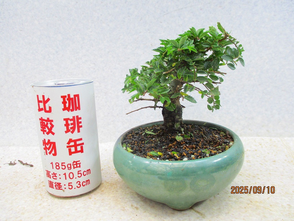 - [緑の市場] ミニ盆栽 楡欅(9878草均釉丸鉢)全高:16㎝【小型送料】*同梱包対応「まとめて取引」厳守*60サイズ送料明記