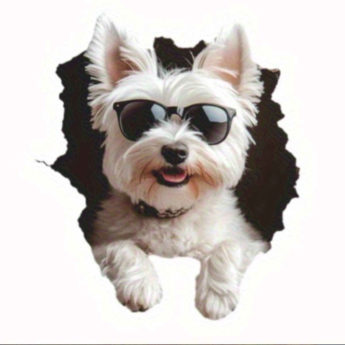 > ステッカー サングラスをした犬 ホワイトテリア アニマル 車用 14cm 壁穴 イヌ ノートパソコン ビニール シール 2D バイク 窓用 いぬ t8545