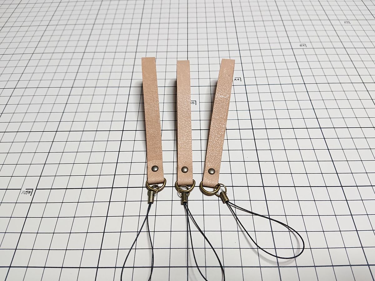 - レザー◆本革 ストラップ 山羊革 3本 8g A 生成り ヌメ革