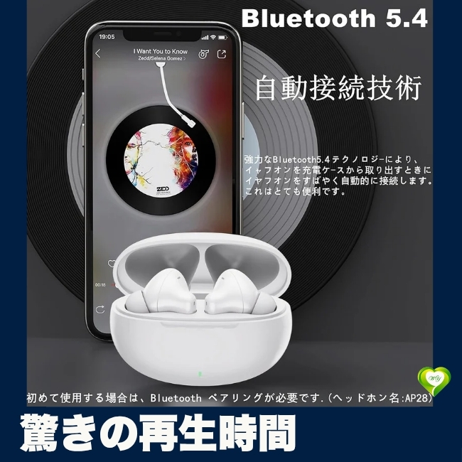 > 【驚きの再生時間】ワイヤレスイヤホン Bluetooth5.4 自動接続 軽量設計 IPX7防水 LED表示 人気 おすすめ