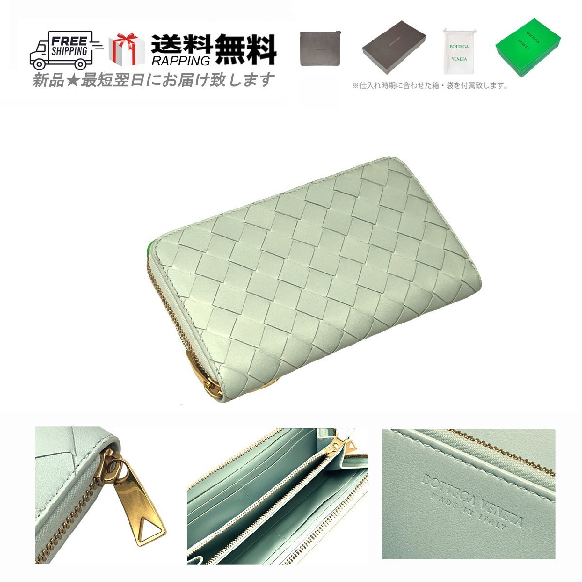 - L459.. BOTTEGA VENETA ボッテガ ヴェネタ 長財布 ウォレット ジップアラウンド カーフ イントレ イタリア製 ★ 3902 TEAL WASHED