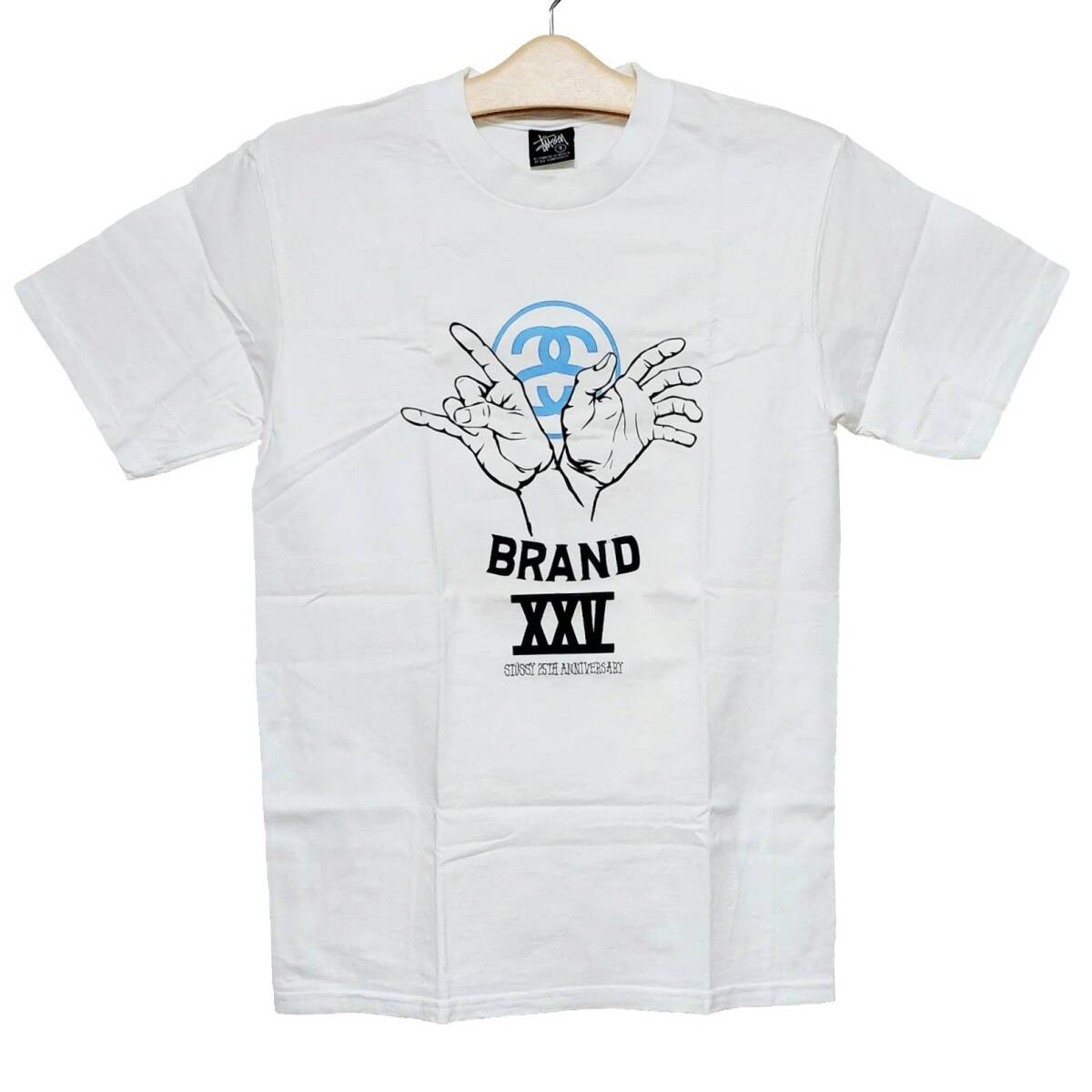 - 超激レア希少!新品タグ付き!STUSSY ステューシー 2005年 25周年 25th限定SSリング&ハンドXXVプリントTシャツ S ホワイト 入手困難!