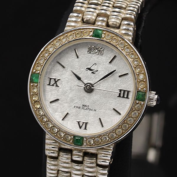 - LZ リズ PT999.5 QZ シルバー文字盤 石付 レディース腕時計 KMR 2000000 NSK