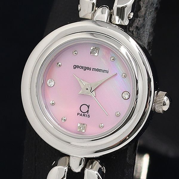 - 稼動 良品 QZ ジョルジュメミ 石付 ピンクシェル文字盤 レディース腕時計 OKZ 2000000 NSK