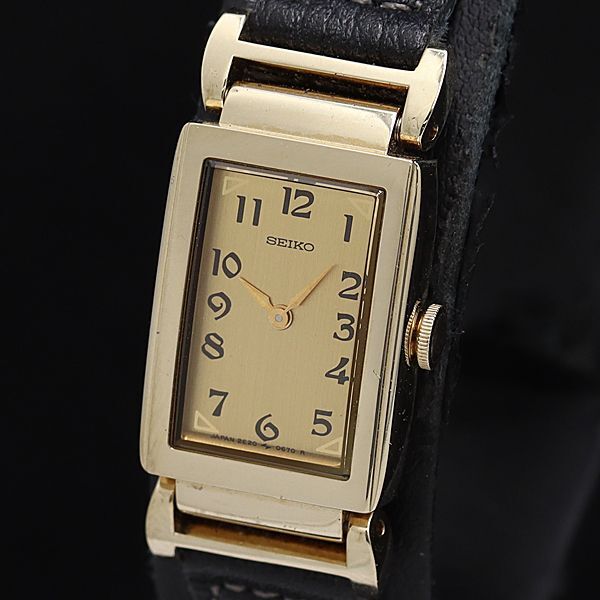 - 良品 セイコー 2E20-0670 スクエアタイプ GP SS QZ ゴールド文字盤 レディース腕時計 KMR
