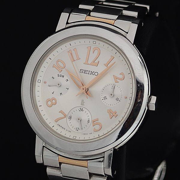 - 稼働 良品 セイコー ルキア 5Y89-0AR0 QZ シルバー文字盤 クロノグラフ ラウンド レディース腕時計 OSW 2000000 NSK