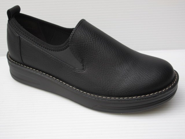 > 足が痛くならない柔かカジュアル ウォーキング シューズ 24.5 幅広 4E wilsonlee 5871 黒 ウイルソンリー 婦人 レディース スリッポン