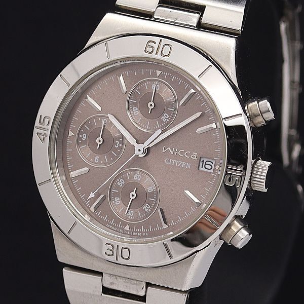 - 良品 シチズン QZ 0510-L20450 ウィッカ シルバー文字盤 クロノ デイト レディース腕時計 NKG