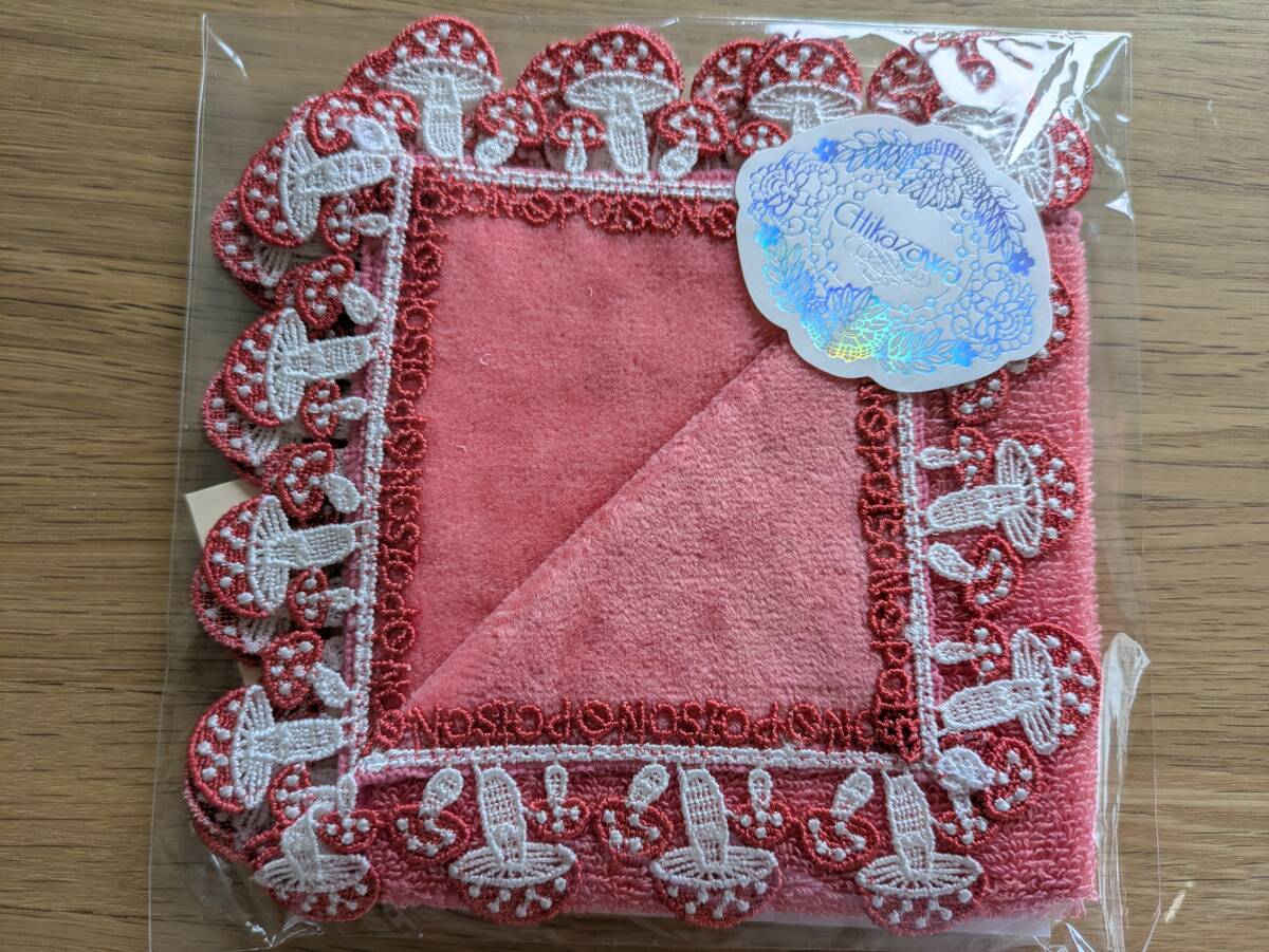 - 近沢レース タオルハンカチ 毒キノコ 限定色コーラルピンク