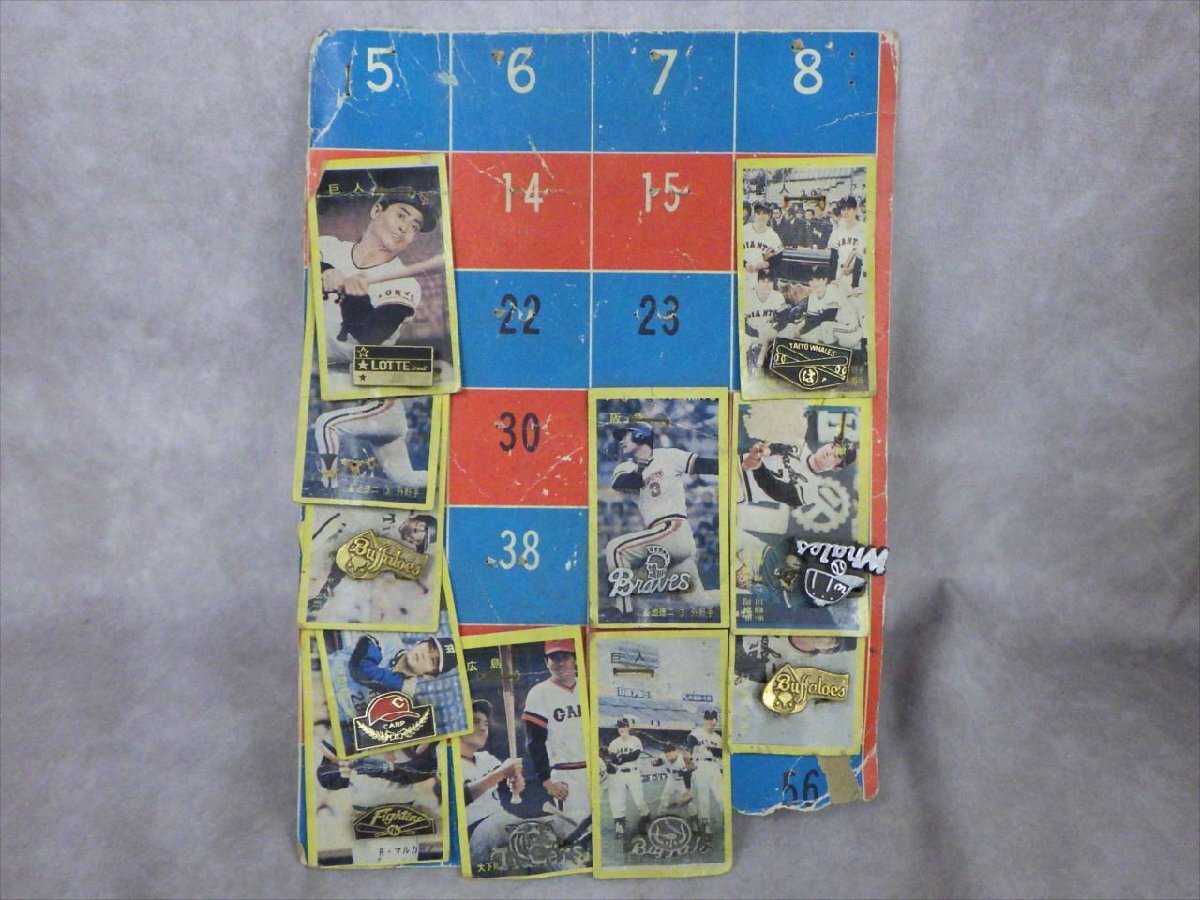 - R11 当時物 1970年代 台紙付き プロ野球 カード ピンバッジ 巨人 1 王貞治 90 長嶋茂雄 監督 球団 野球 バッジ 紙物 駄菓子屋 昭和 レトロ