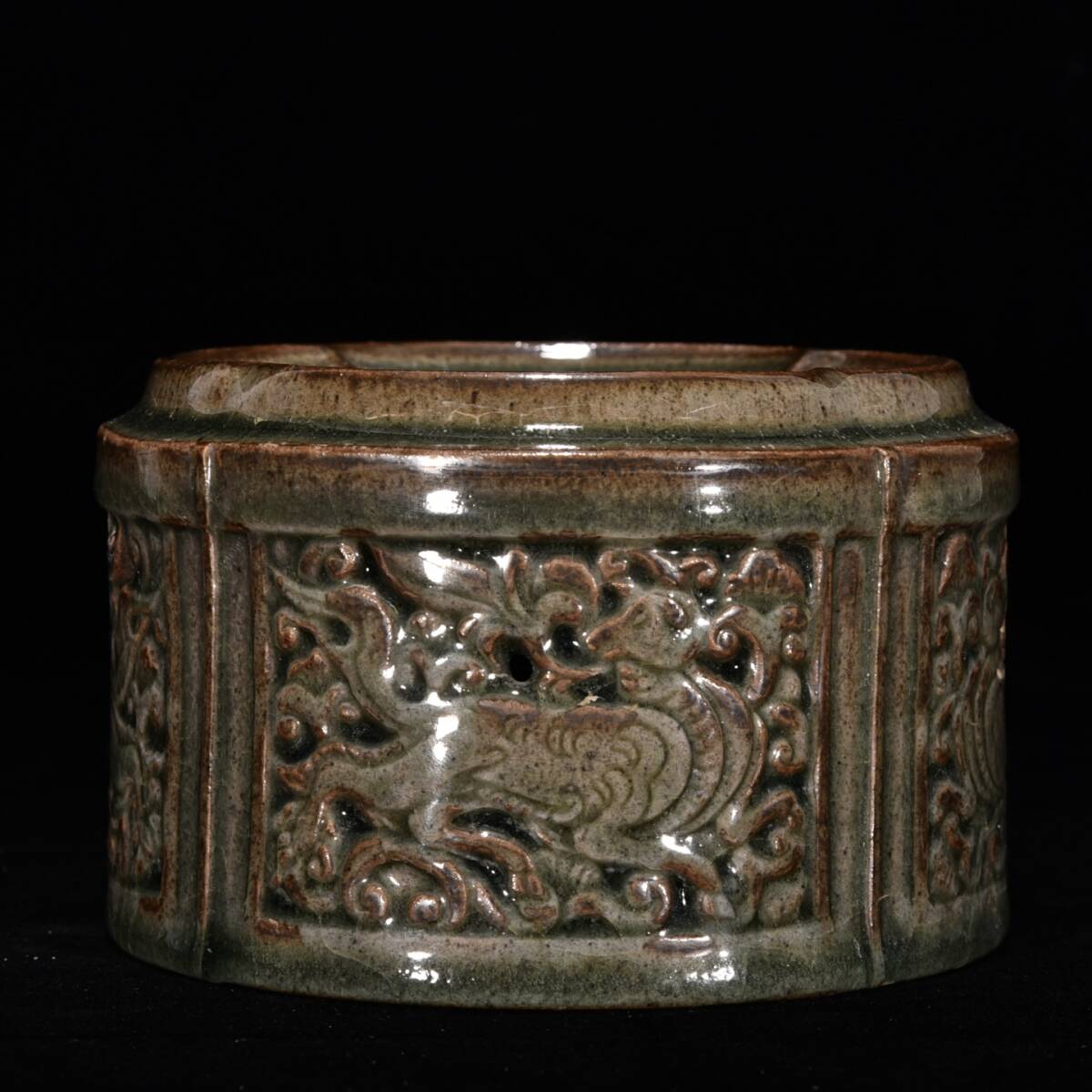 > 9_ZZ9007【惠】人間国宝 中国骨董 陶芸 磁器【越窯刻獣紋洗】工芸品 施釉陶 青花磁 陶芸 置物 收藏品