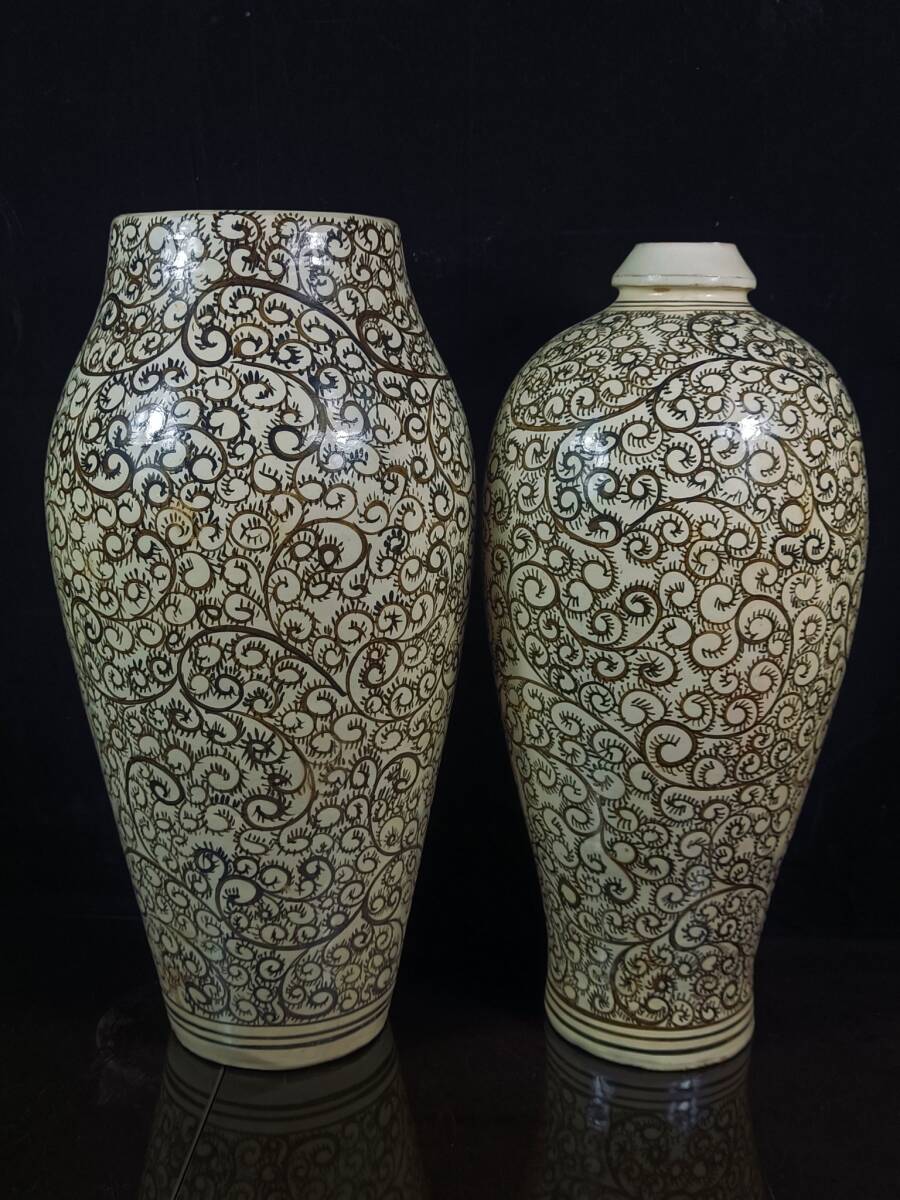 > 9+GV8628「東洋美術」 中国骨董 人間国宝 磁器製品【旧コレクションの磁州窯花瓶】 旧物 孤品 珍品 陶磁器 収蔵価値が高い