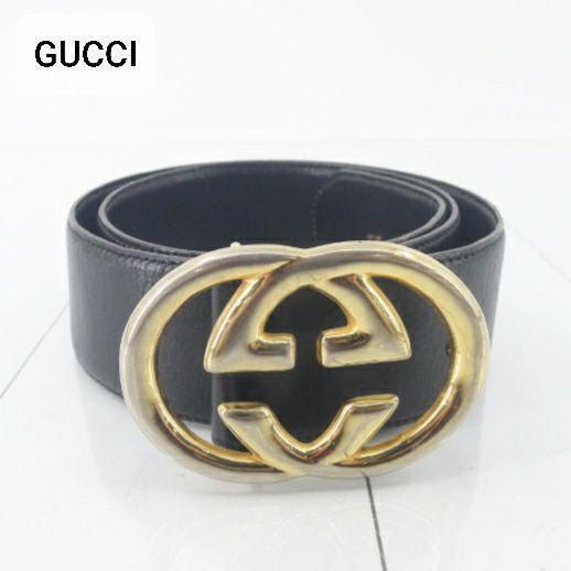 - GUCCI グッチ ブラックレザーベルト ダブルGロゴ