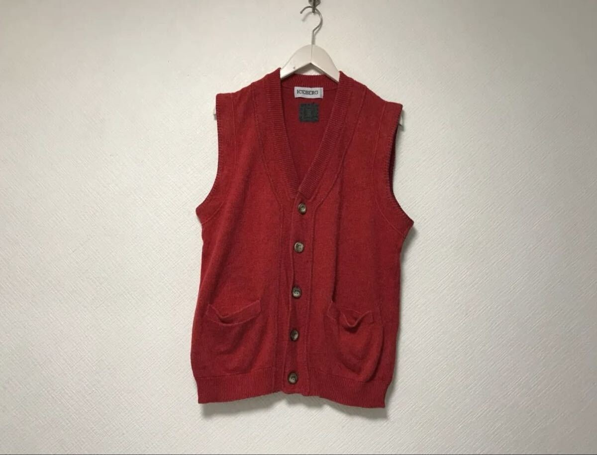 - 本物アイスバーグICEBERGコットンシルクニットジレベストカーディガンサーフアメカジミリタリーワークゴルフメンズ赤レッドイタリア製2M