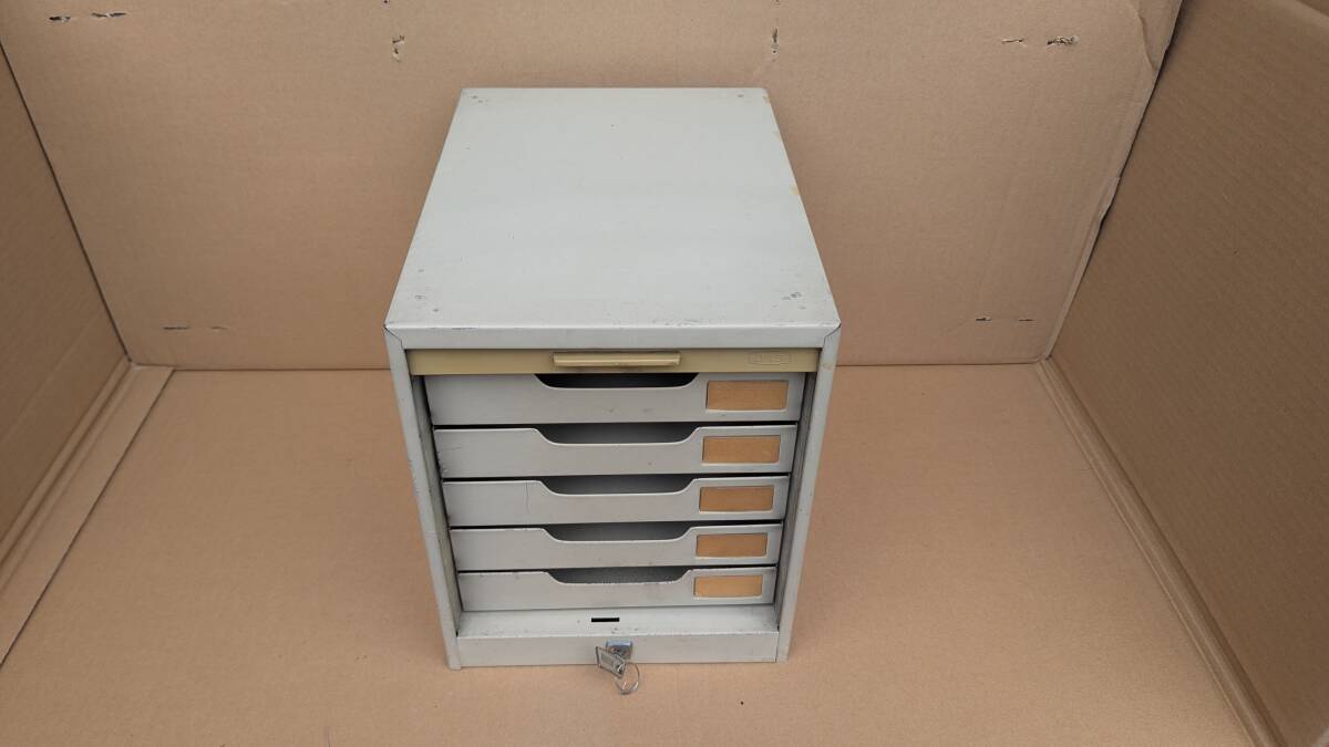 - コクヨ レターケース 書類ケース スチール製 A4サイズ 引き出し5段 シャッター付き 鍵付き 中古品