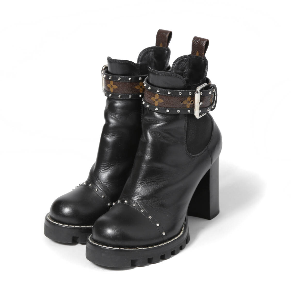 > 美品 LOUIS VUITTON ルイヴィトン / スタートレイルライン / レザー モノグラム スタッズ ベルト / サイドゴアブーツ 24cm レディース