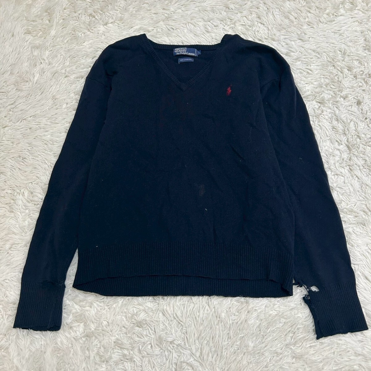 > polo by Ralph Lauren ポロバイラルフローレン ニット Vネック ロゴ刺繍 セーターネイビー サイズL
