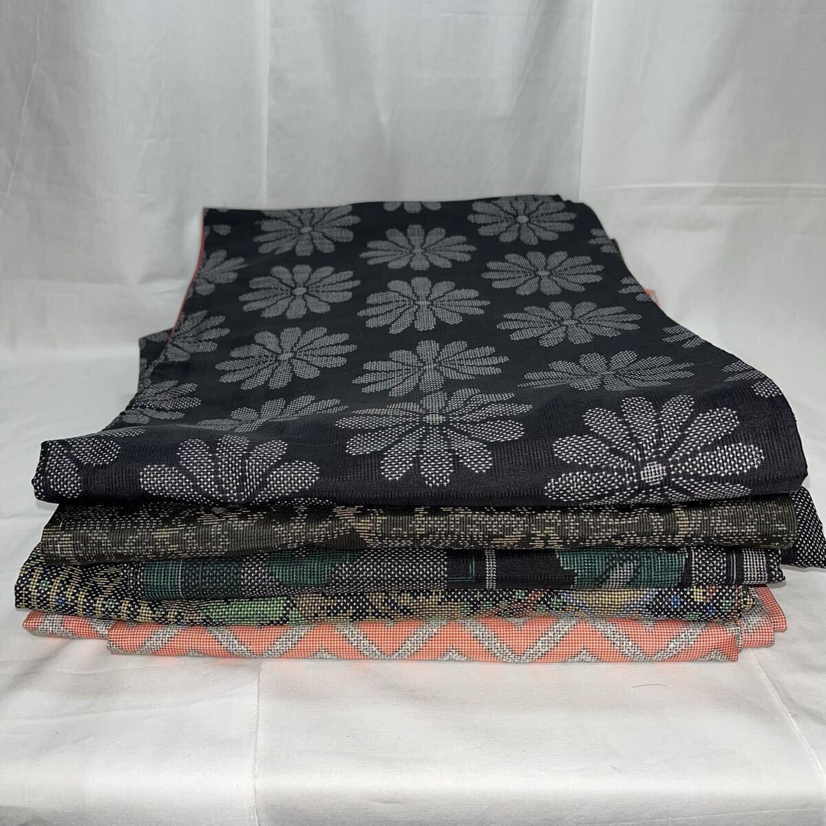 - 《ジャムルK》 QKt0914-83◆着物5枚まとめ 紬 大島紬 着物 リメイク材料 正絹 すべて正絹 素材 ハンドメイド リメイク 生地 はぎれ