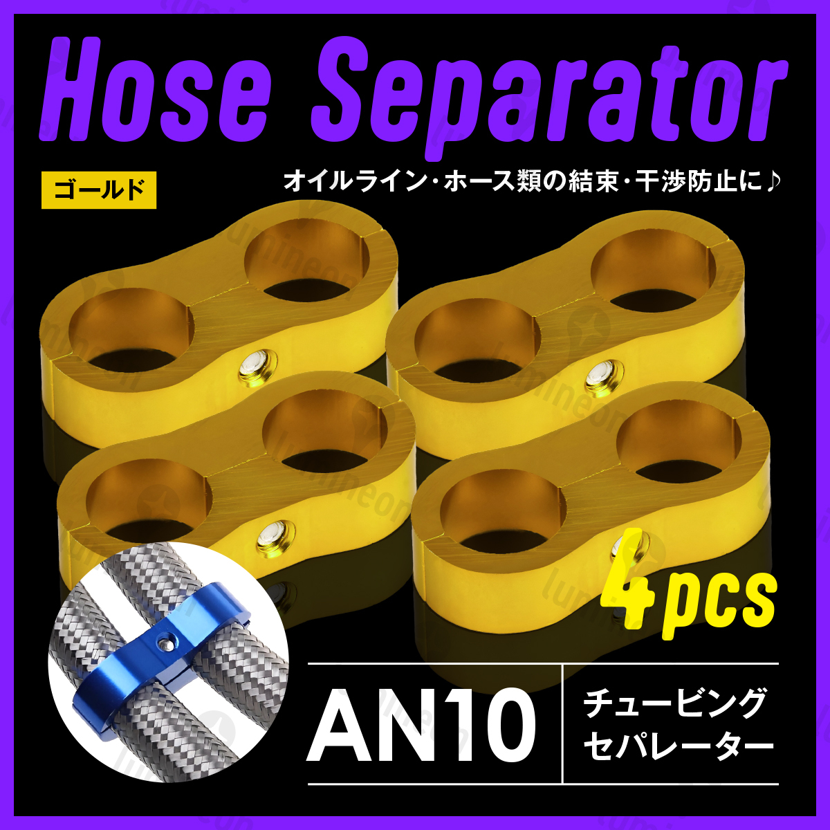 - ホース セパレーター チュービング クランプ 4個 セット フィッティング アダプター バイク 二輪 車用 AN10 配線 固定 ゴールド g231d4 1