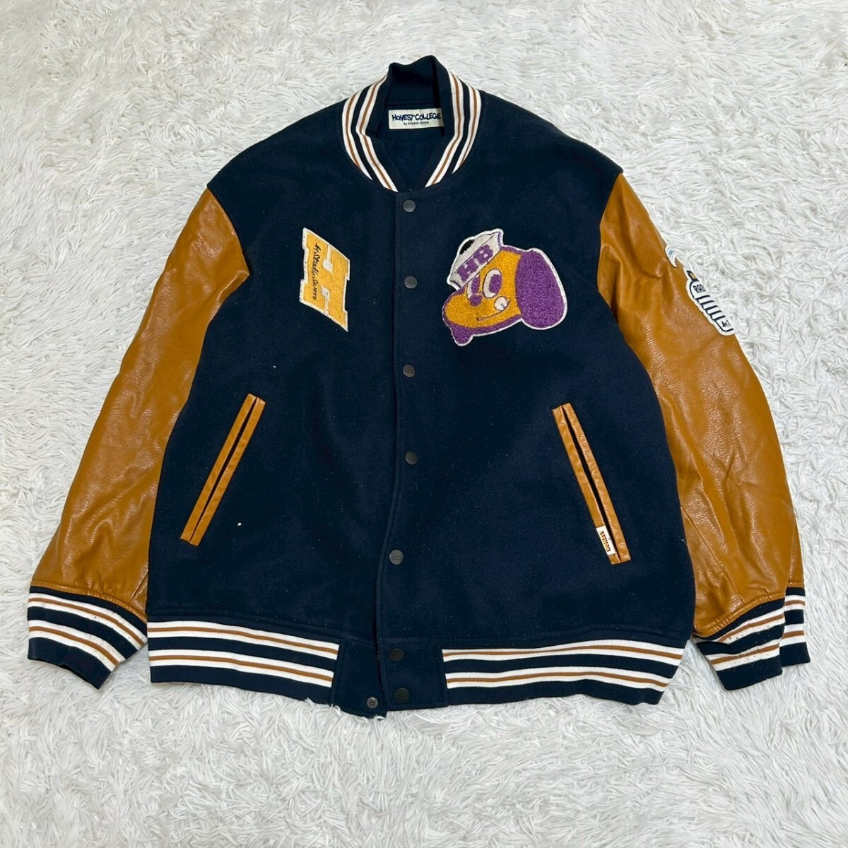 - GU ジーユー honest college スタジアムジャンパー ブルゾン スタジャン ネイビー サイズXXL ワッペン アウター