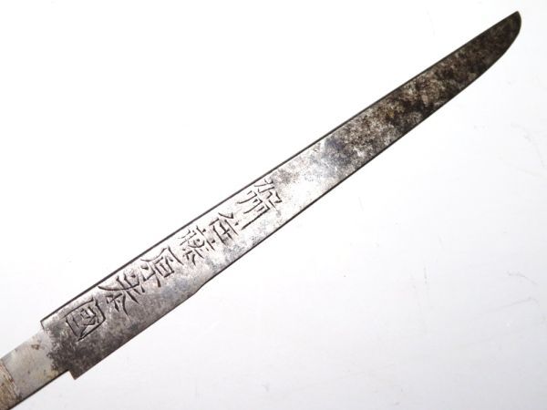 - 【11682】刀装具 武具 江戸~明治 在銘 (加州住藤原泰國) 小柄 刃 (検/刀/拵/甲冑)(初品・買取品)