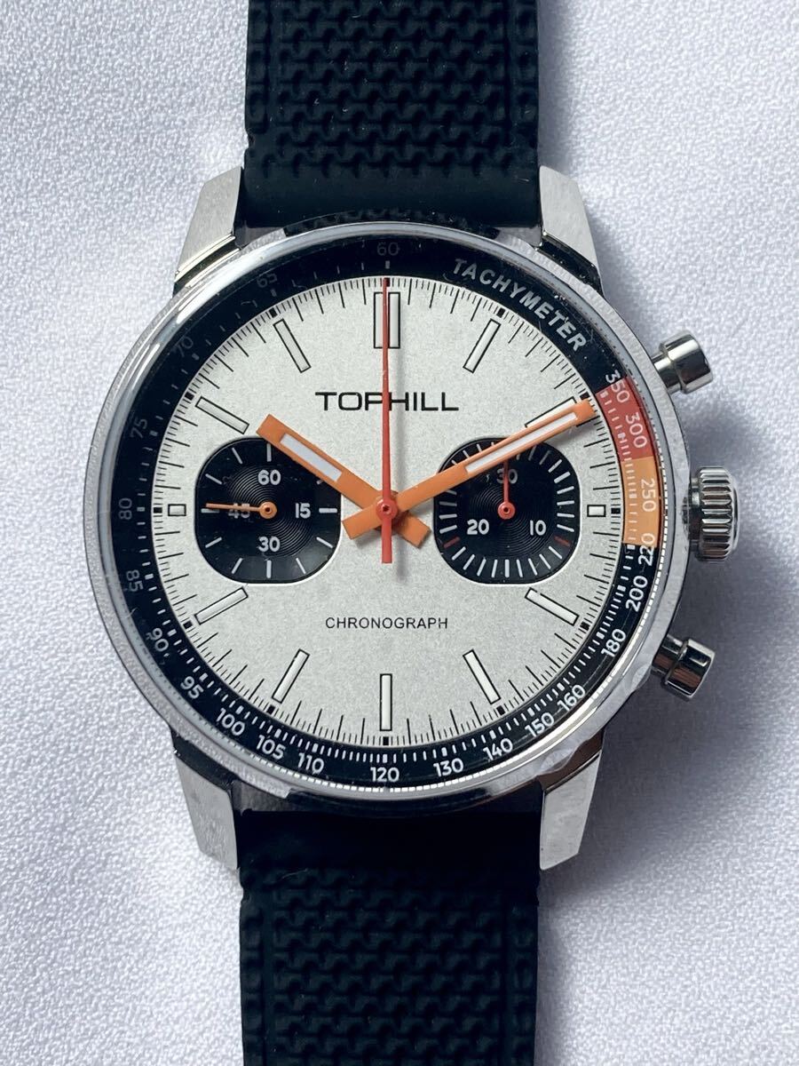 - クロノグラフ手巻き時計 白文字盤 機械式 パンダ クロノグラフ レトロ 裏スケ 手巻き 腕時計