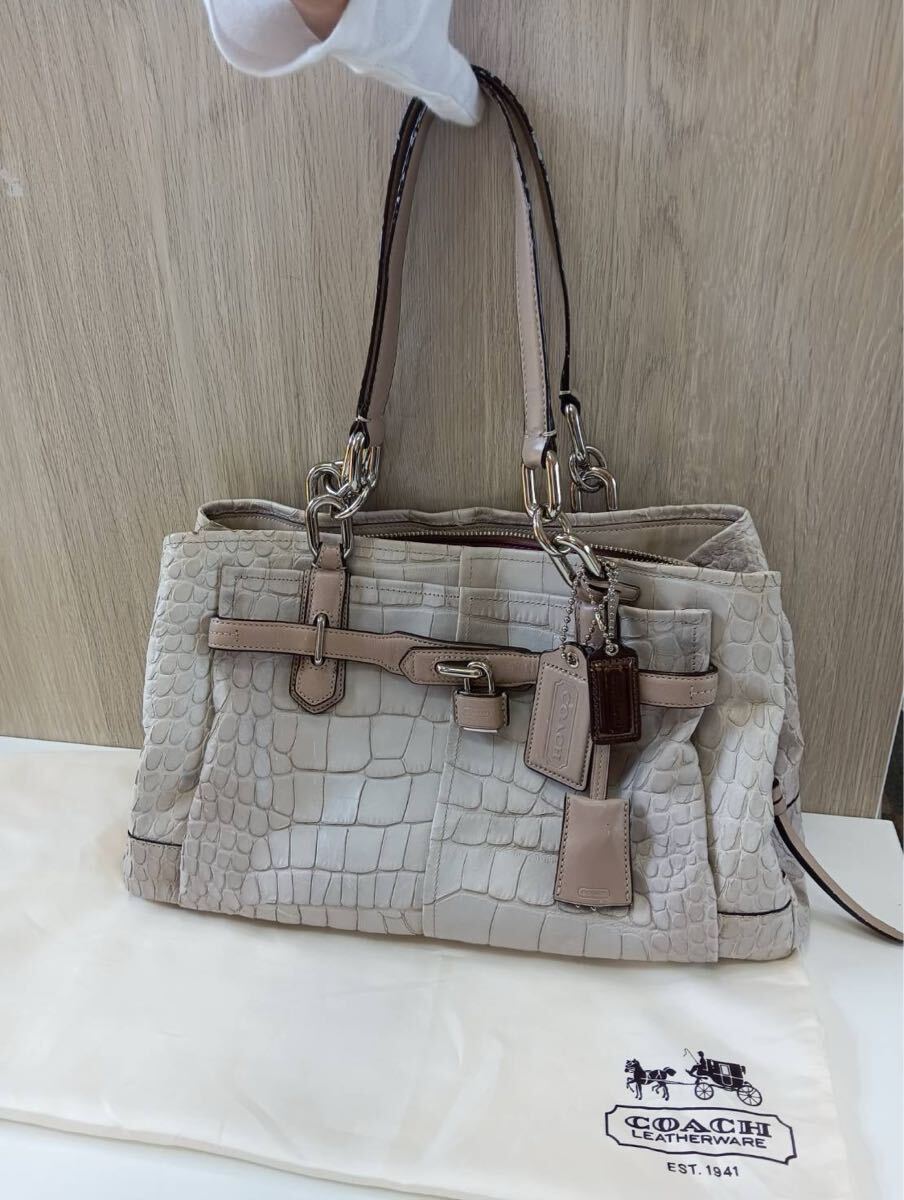 > 【中古品】COACHコーチ チェルシー ハンドバッグ クロコ型押し レザー エンボスド 17838 トートバッグ ショルダーバッグ 手提げ 保存袋付き