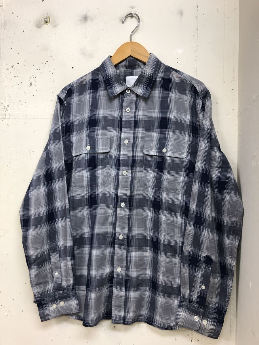 - ノースフェイス シャドーチェック 速乾 長袖シャツ メンズL 紺グレー ガーゼの様な素材