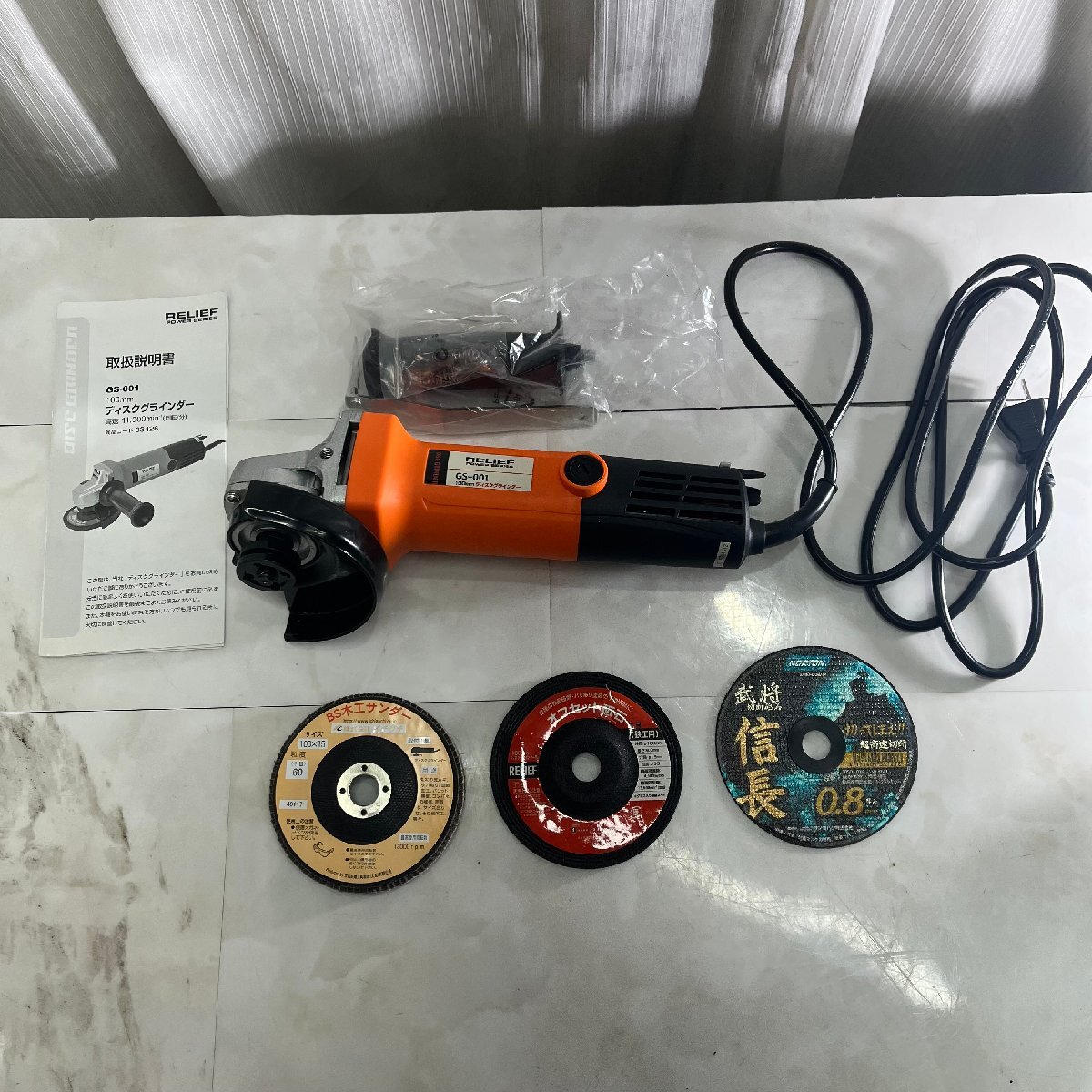 - =R= RELIEF リリーフ GS-001 グラインダ 100mm 100V 簡易動作確認済み カッター付属=B-250917