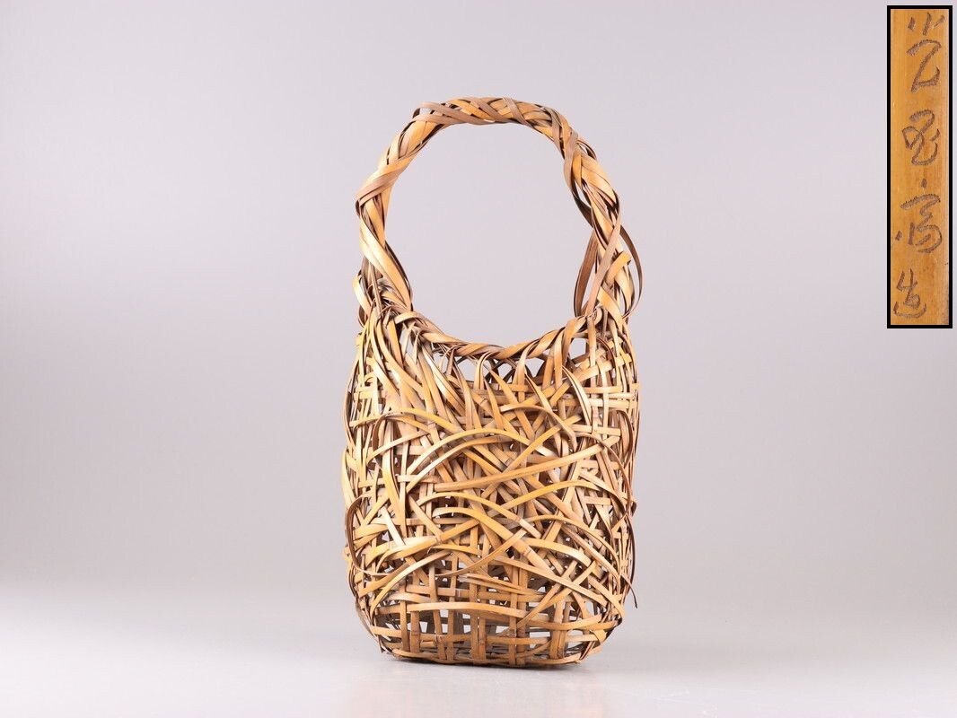 - 古美術 古竹造 網代細工 竹籠花入 光玉斎 造 在銘 時代物 極上品 初だし品 D4366