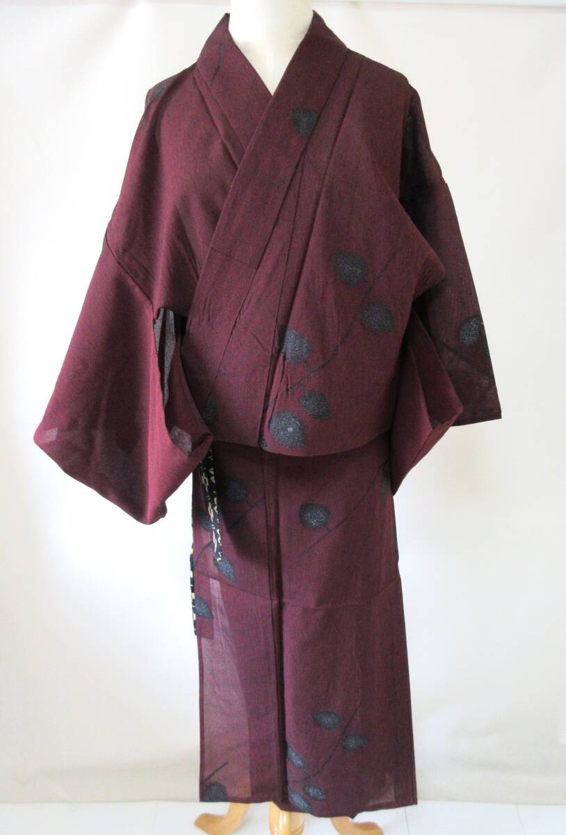 - (54-5)二部式 着物 和装 和服 セパレート えんじ 夏用 絽?