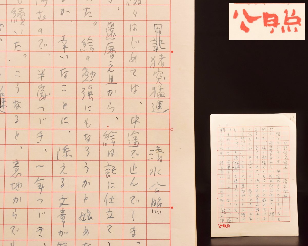 Z472 【泉美】直筆 清水公照 原稿「猪突猛進」日記 エッセイ 4枚拍卖