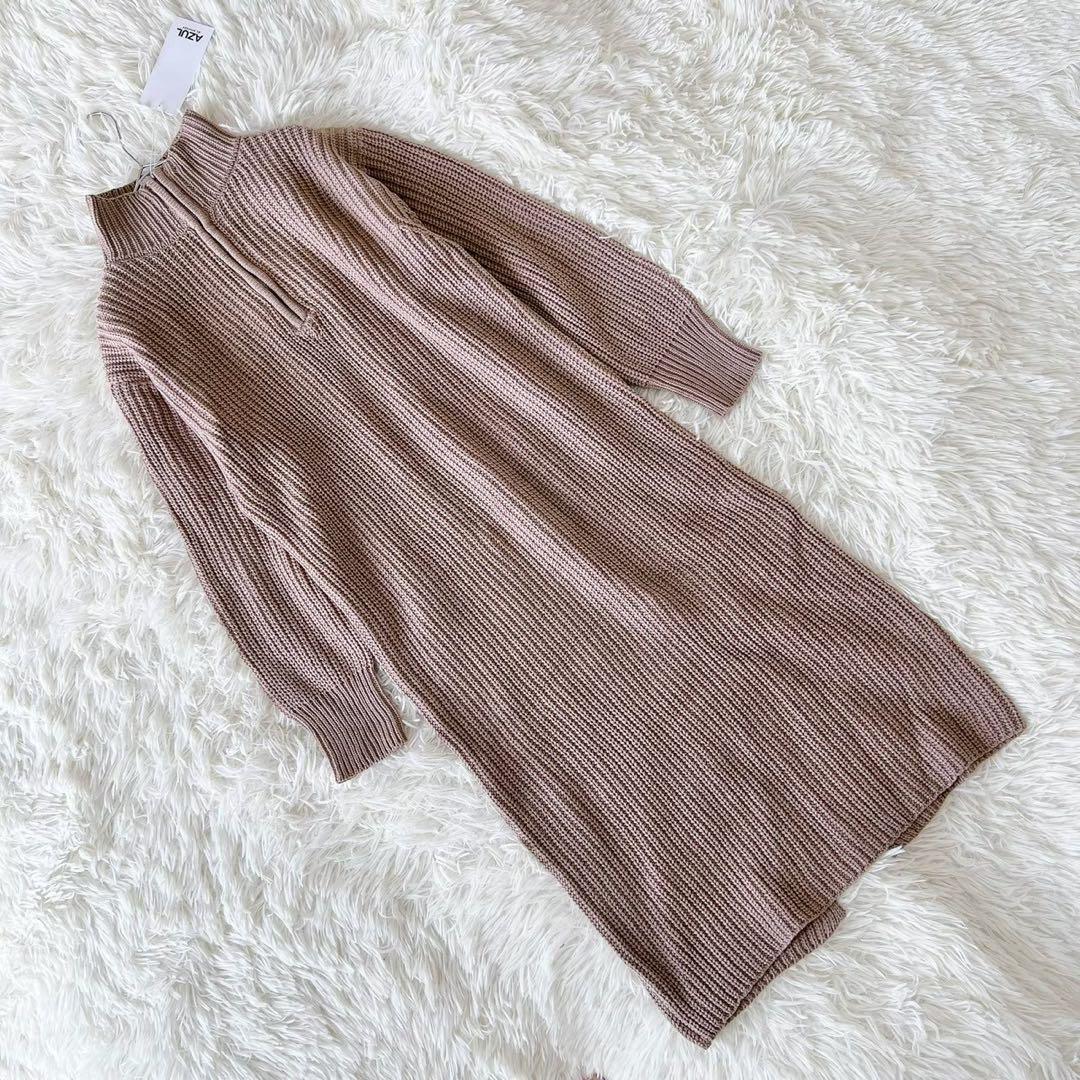 - 新品 《アズールバイマウジ》 AZUL BY MOUSSY (S) ハーフジップリブニットワンピース 楽チン
