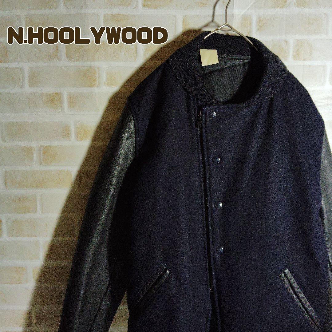 - エヌハリウッド スタジャン レザー ライダース ネイビー 牛革 アンゴラ