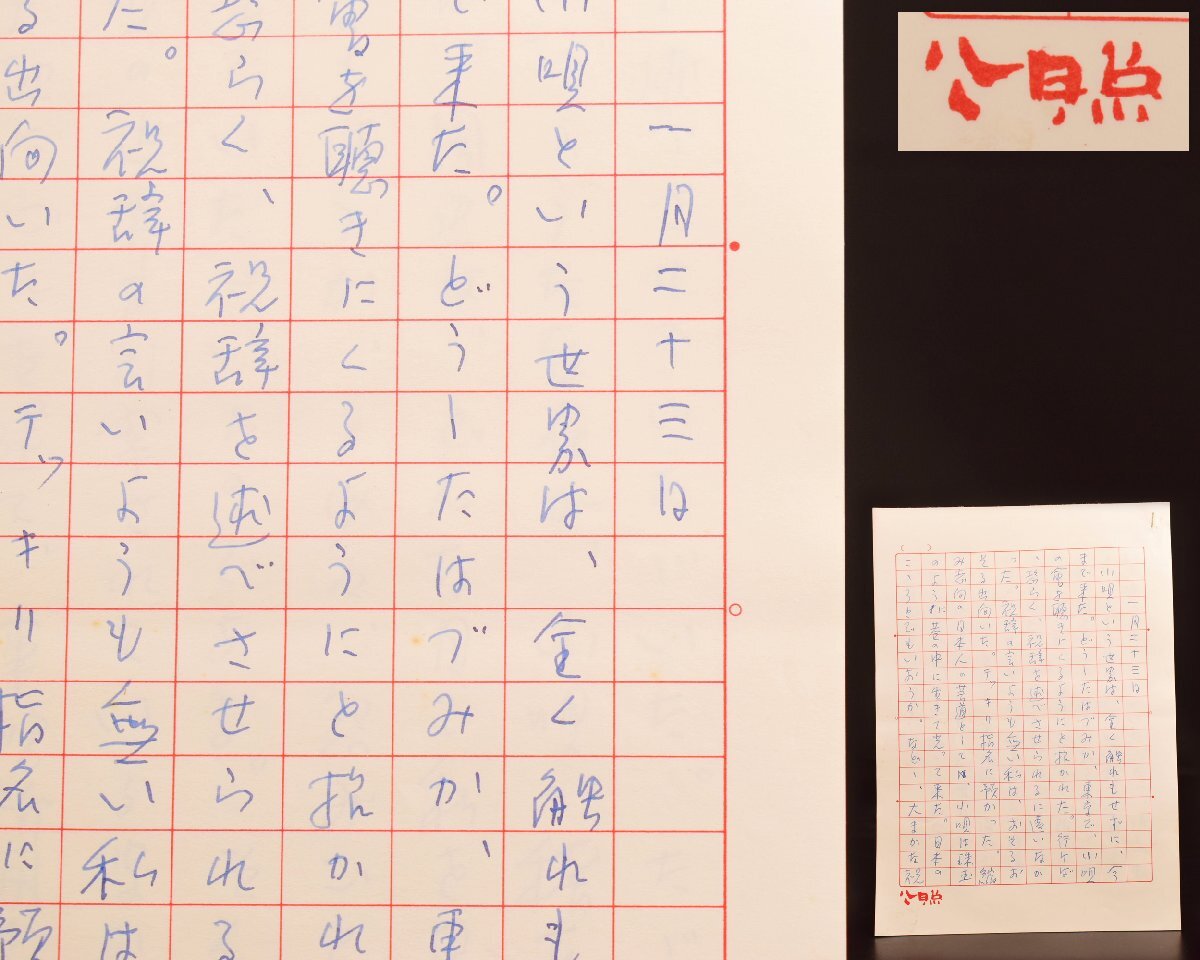 Z495 【泉美】直筆 清水公照 原稿「猪突猛進 一月二十三日」日記 エッセイ 4枚