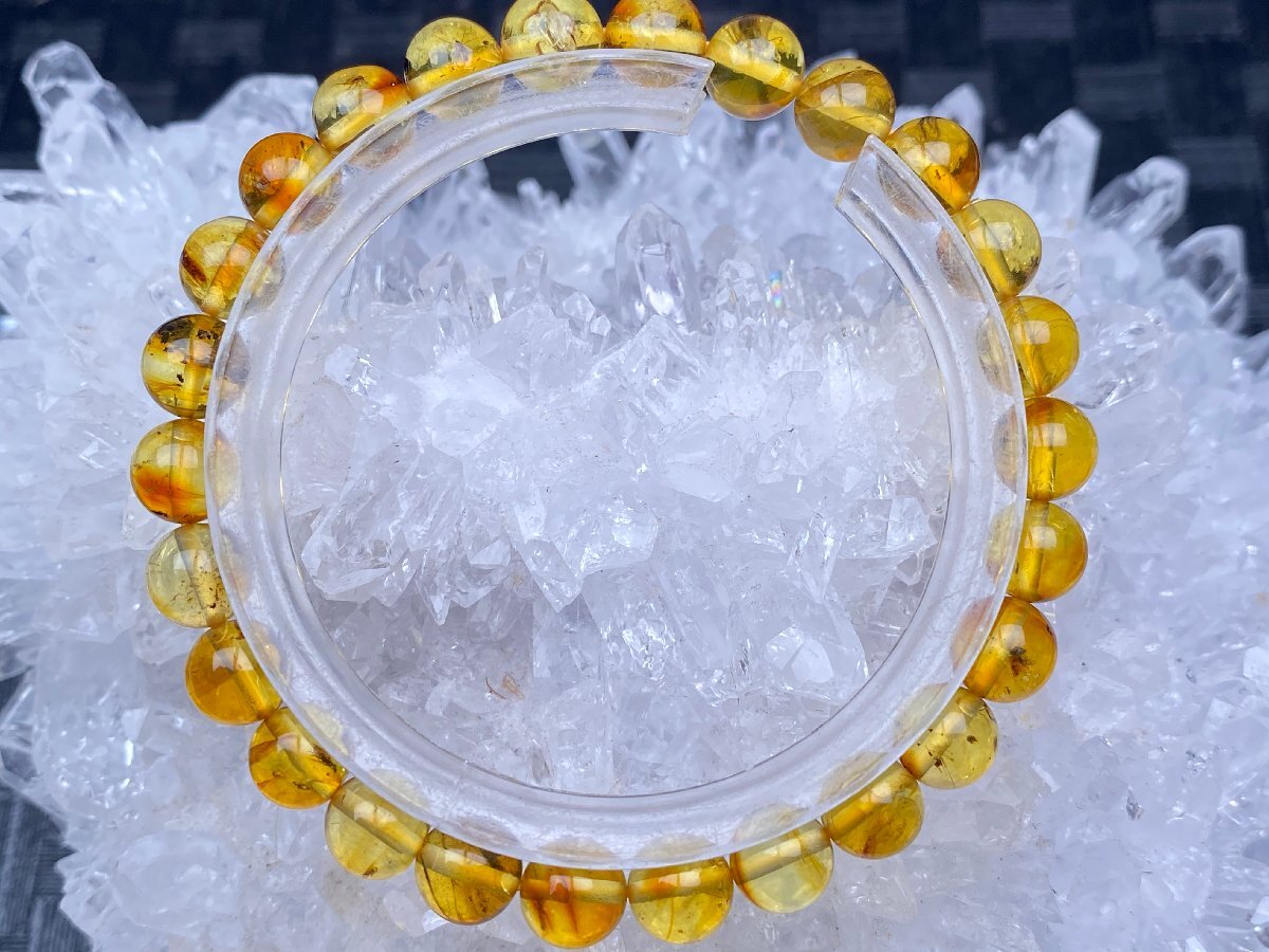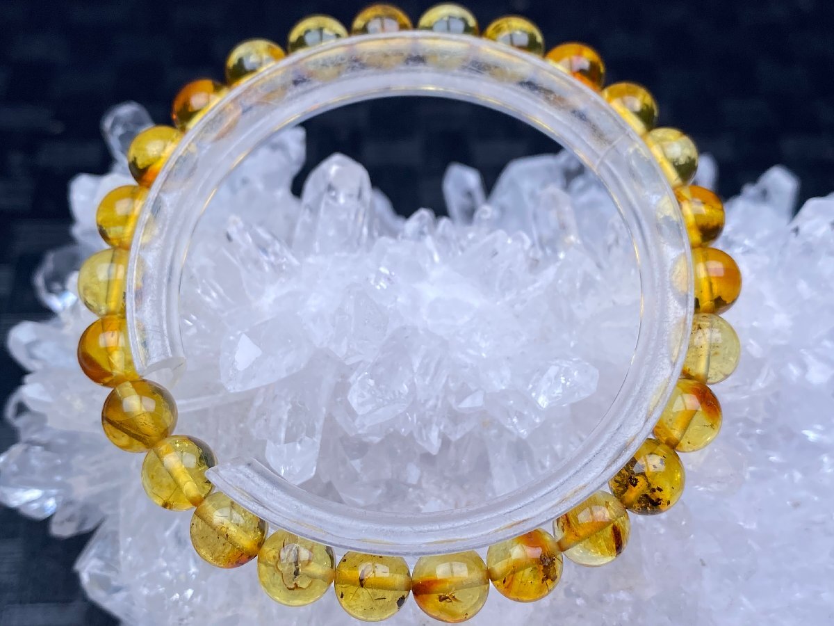 - 即決 0615k424 極美品★【45A虫入りアンバー(琥珀)】★ブレス 7.5mm(新品)