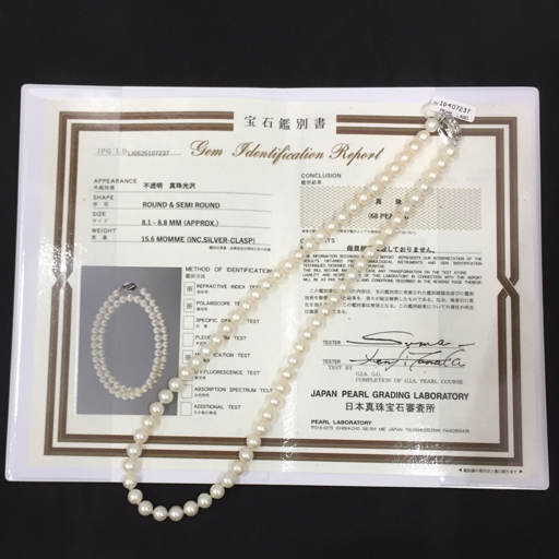 - 真珠 パール Silver金具 直径8.1mm~8.8mm ネックレス アクセサリー レディース 保存箱 鑑別書付き