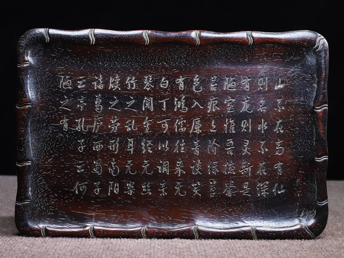- 旧 清代 紅花梨木 独板 彫刻 詩詞茶道 茶盆 観賞皿 中国古美術 古賞物 古置物 唐物 S79