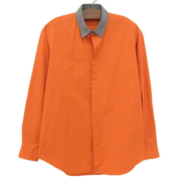 - ジョンローレンスサリバン JOHN LAWRENCE SULLIVAN コットン 長袖 クレリック カジュアル シャツ メンズ オレンジ グレー size38 [Y03140]