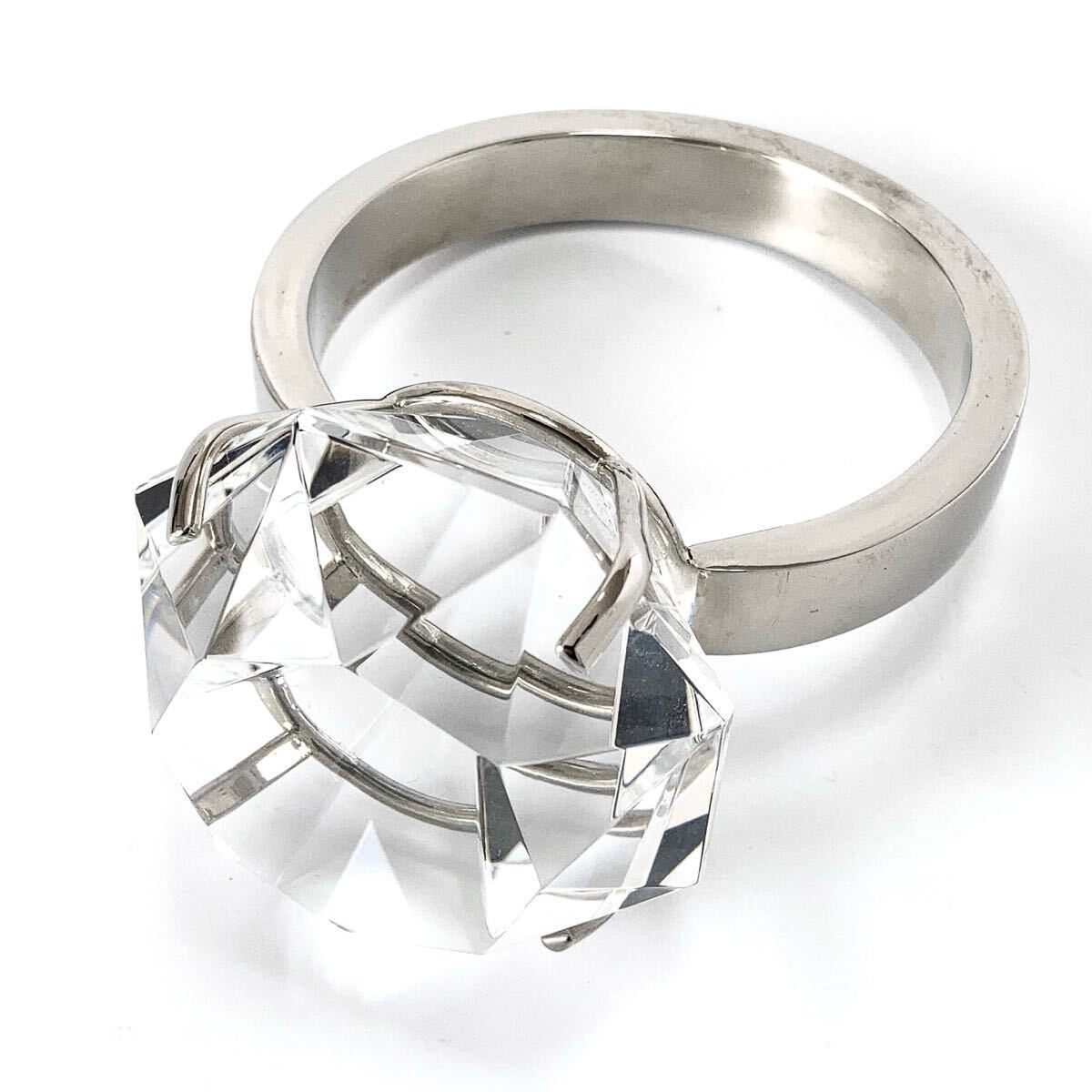 - 大きなダイヤモンドリング風ペーパーウェイト☆ガラスジュエリーリング☆ペーパーウエイト☆インテリアオブジェ 指輪デザイン