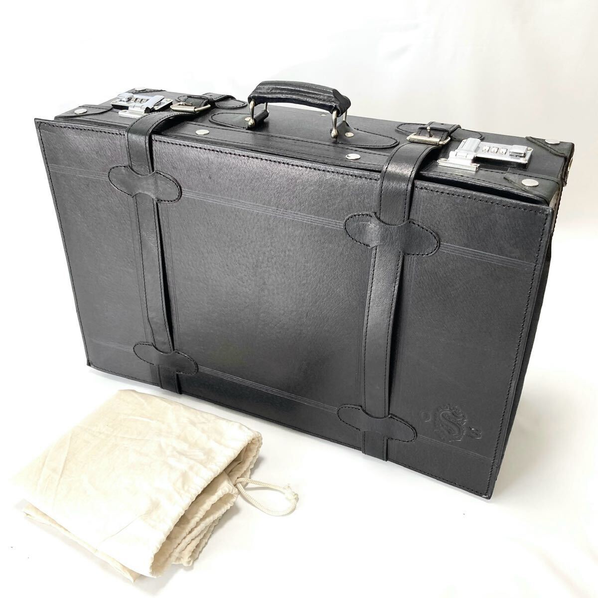 - 本革レザーアンティークトランク☆旅行鞄かばんアタッシュケース キャリーケース トラベルバッグ 黒 大 ブラック ナンバーロック