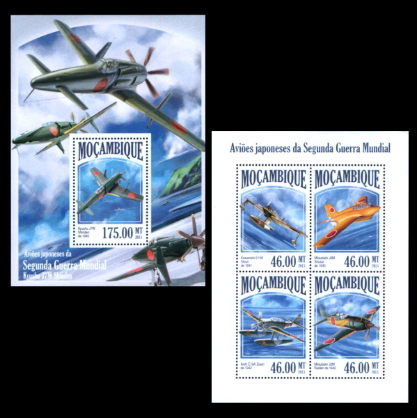 - ■モザンビーク切手 2013年 日本の戦闘機 / 震電 / ゼロ戦 シート+4種シート