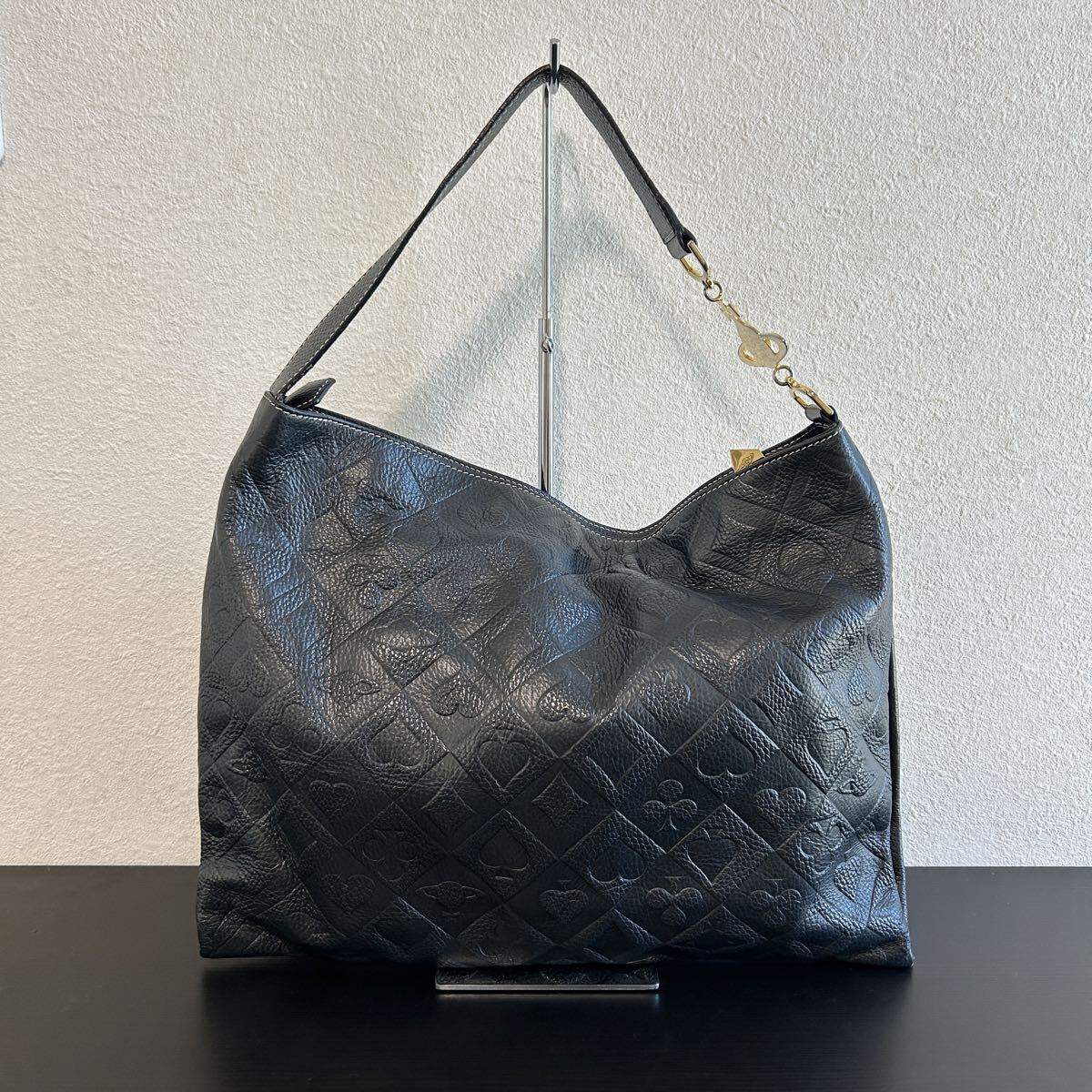> Vivienne Westwood ヴィヴィアン トランプ柄 ワンショルダーバッグ レザー オーブ金具 ブラック