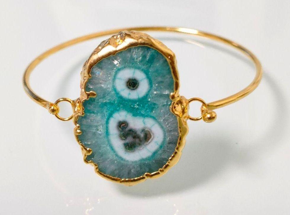 - 1点もの c4 ストーン ハート エメラルドグリーン ブレスレット ゴールド