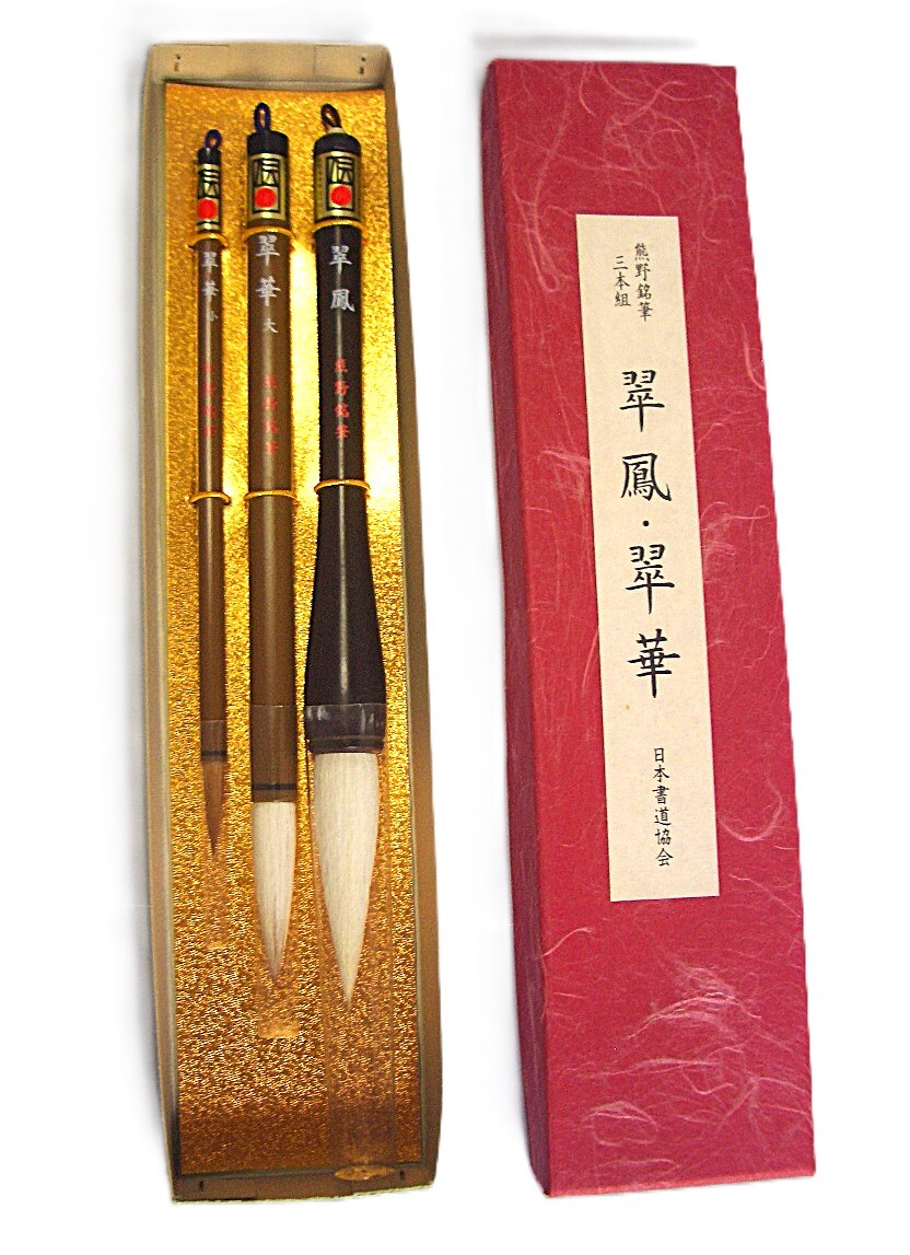 - 日本書道協会推薦 熊野銘筆 翠鳳 翆華(大・小)3本組 未使用品