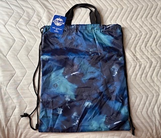 - 未使用★アスレタ★巾着袋★シューズ袋★紺青カモフラージュ模様★黒ロゴ★ナップザック★ATHLETA